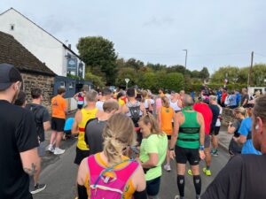 The race is organised by Dronfield Running Club and is advertised (ominously) with the words “Dare to Ride?”. It is distinctive, a mostly rural road race, not only that, but with 1,670 ft (509 metres) undulating ascent. 13 Striders decided that this was for them: