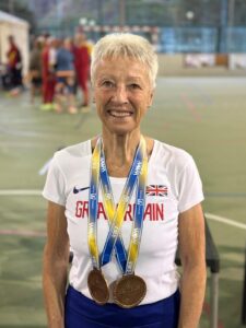 Louise Rowley was seventh W70 in the cross country event and linked up with Dot Kesterton and Lyn Jenkins to claim the bronze team medal. She then took a fine individual bronze in the 10k race, and again linked up with Dot for team gold.