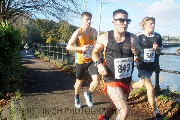Having grown up in the area Gareth Winter returned home for a visit (his mother still lives in the Lake District) and rather nonchalantly reports how he was surprised to win the Lancaster Half Marathon with a pb citing the Thursday track sessions at Woodburn Road as a contributory factor to his success. Starting and finishing on the track at the headquarters of Lancaster & Morecombe AC, the course crosses the river to follow an out and back route on a cycle path on a disused railway so pretty flat all the way.