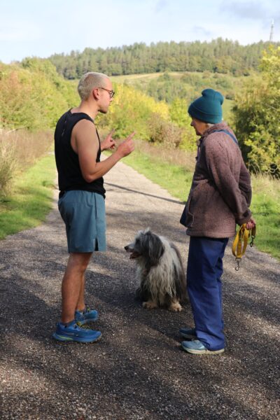 Ross explains to one of the locals what we were doing. Coach ran a little faster for a short while after one dog walker had called him a jogger.